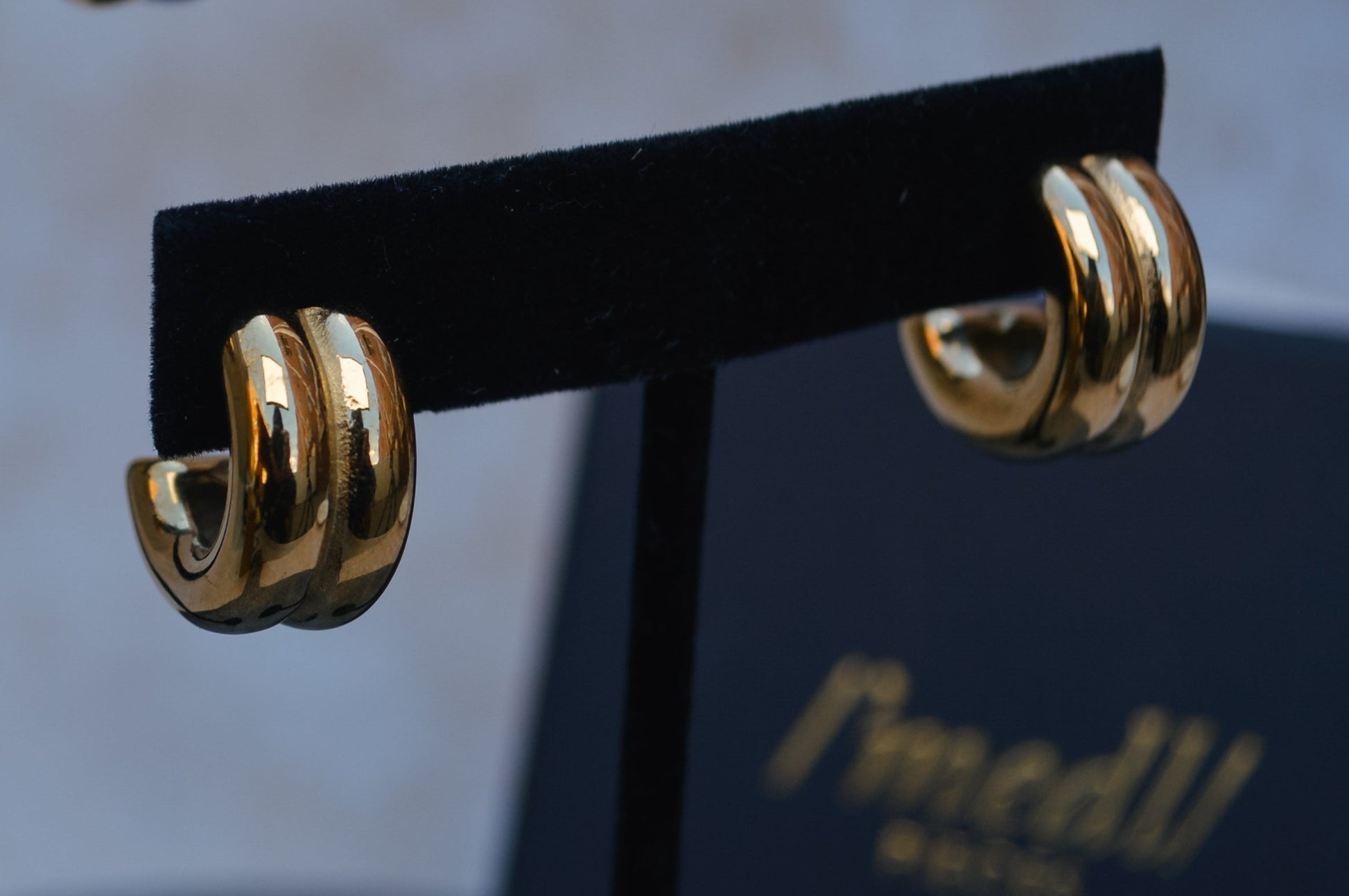 Meet your new everyday essentials — these chic 18k gold-plated huggie hoops are small in size but big on style. Tarnish-resistant and timeless, these earrings are designed for daily wear. They offer the perfect balance of shine and comfort, effortlessly elevating any look. Choose from classic gold or a bold mixed-metal finish to add a modern twist to your stack.